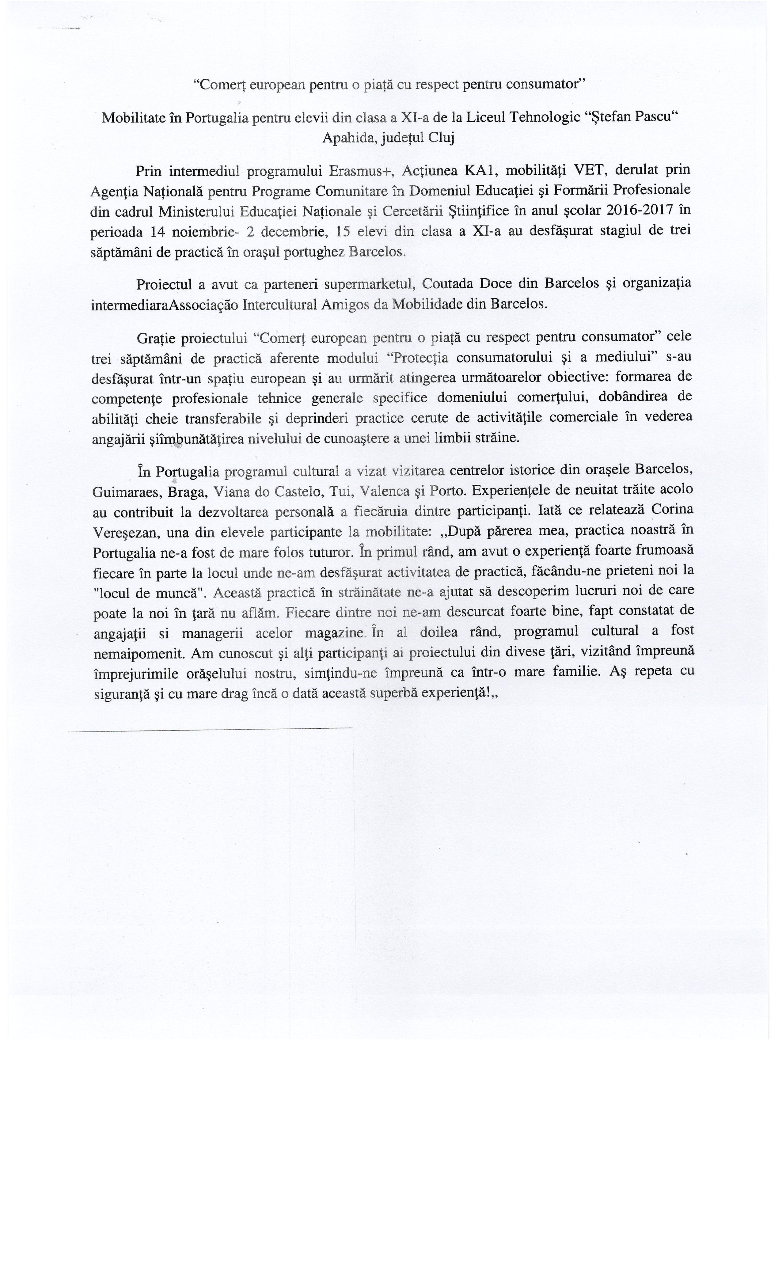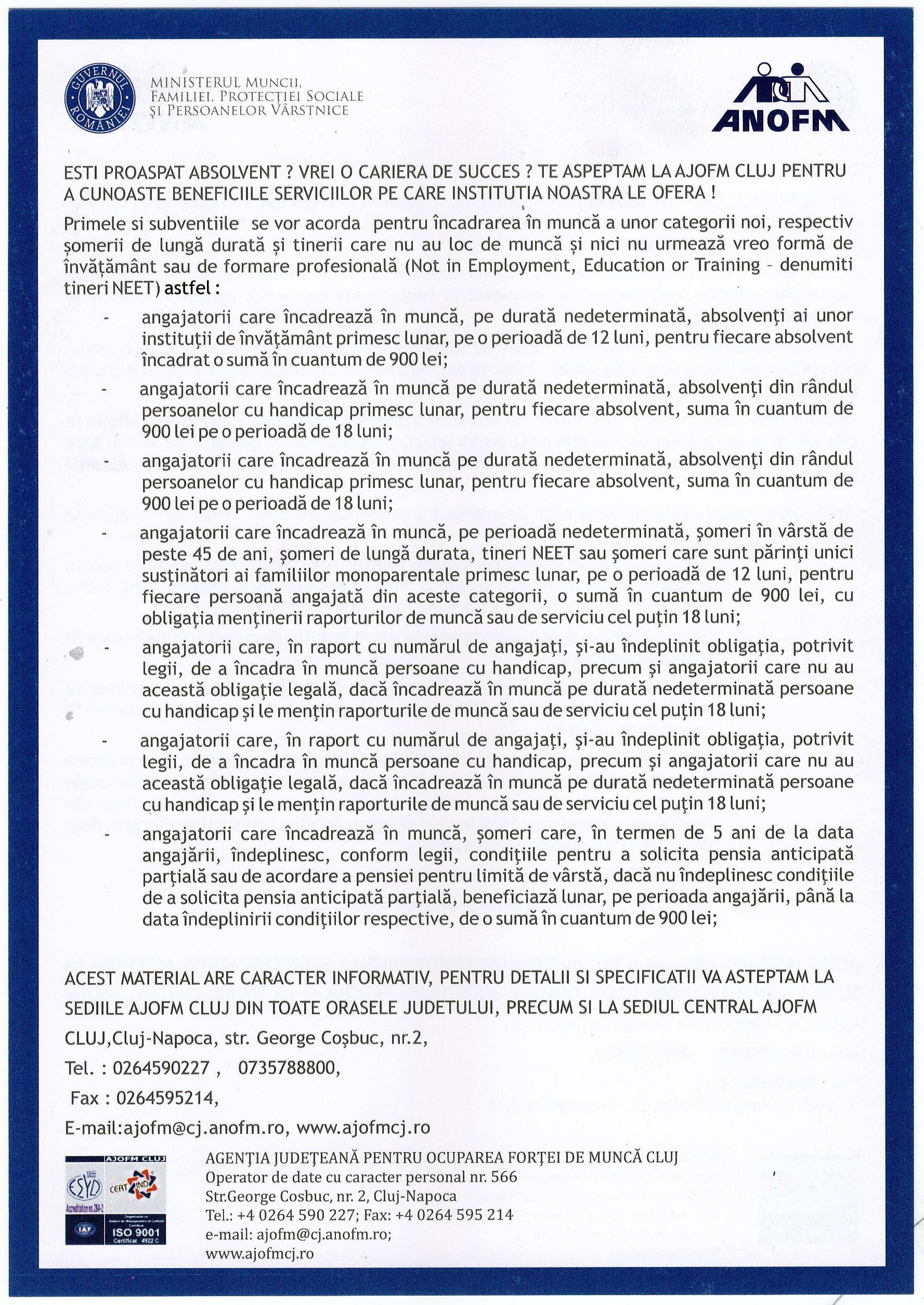 VA MULTUMIM PENTRU INTELEGERE. ( PENTRU INFORMATII SUPLIMENTARE VA RUGAM SA VA ADRESATI CPL CONCORDIA CLUJ-NAPOCA LA NUMARUL DE TELEFON 0264207980)