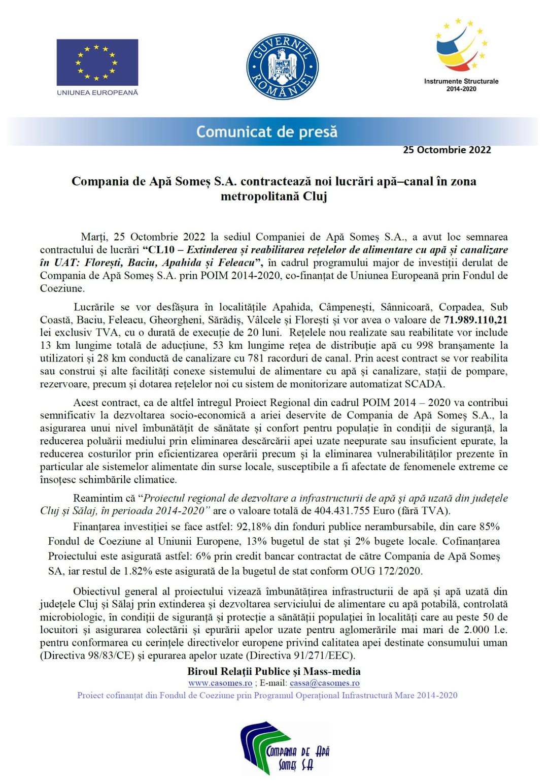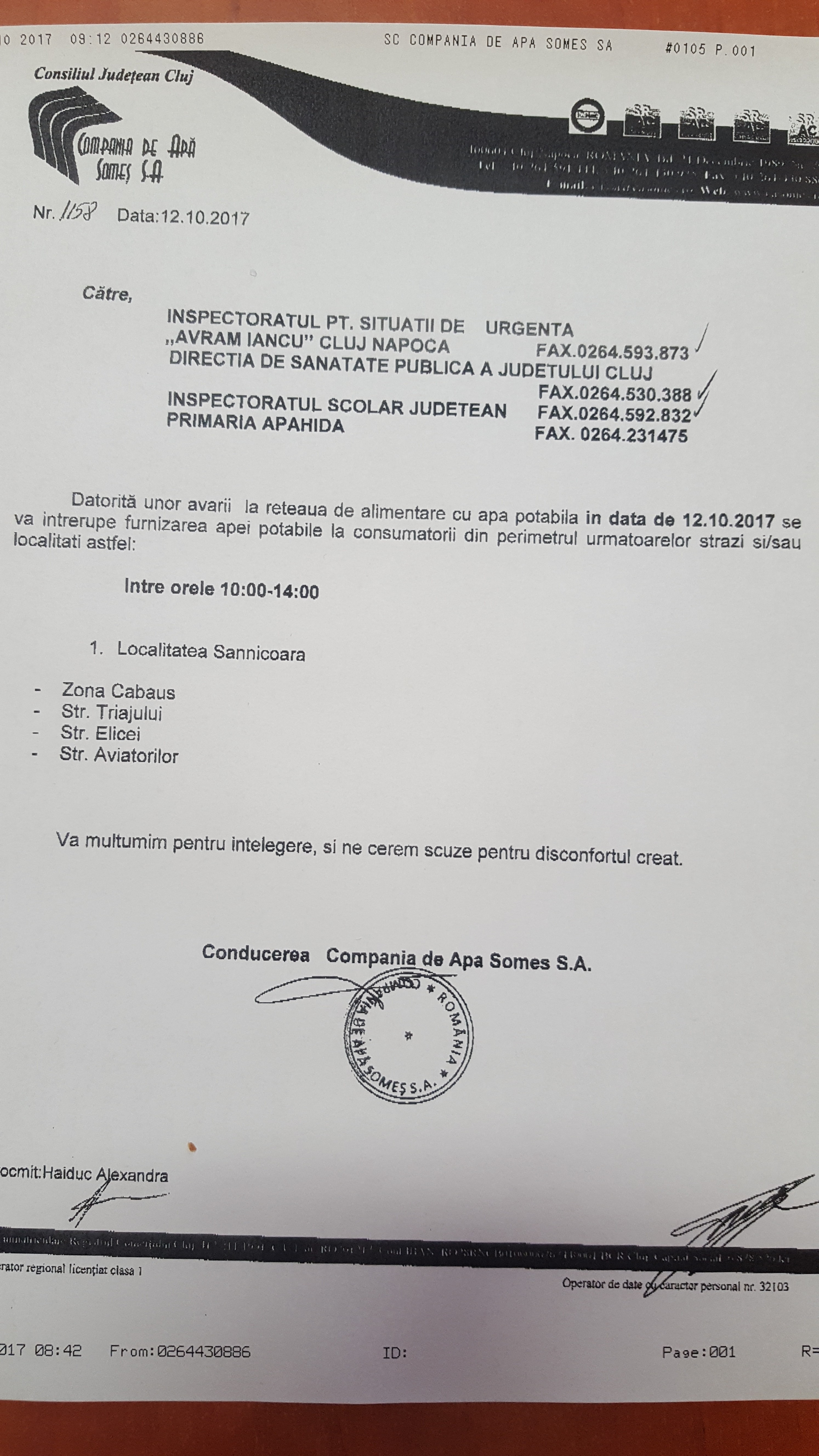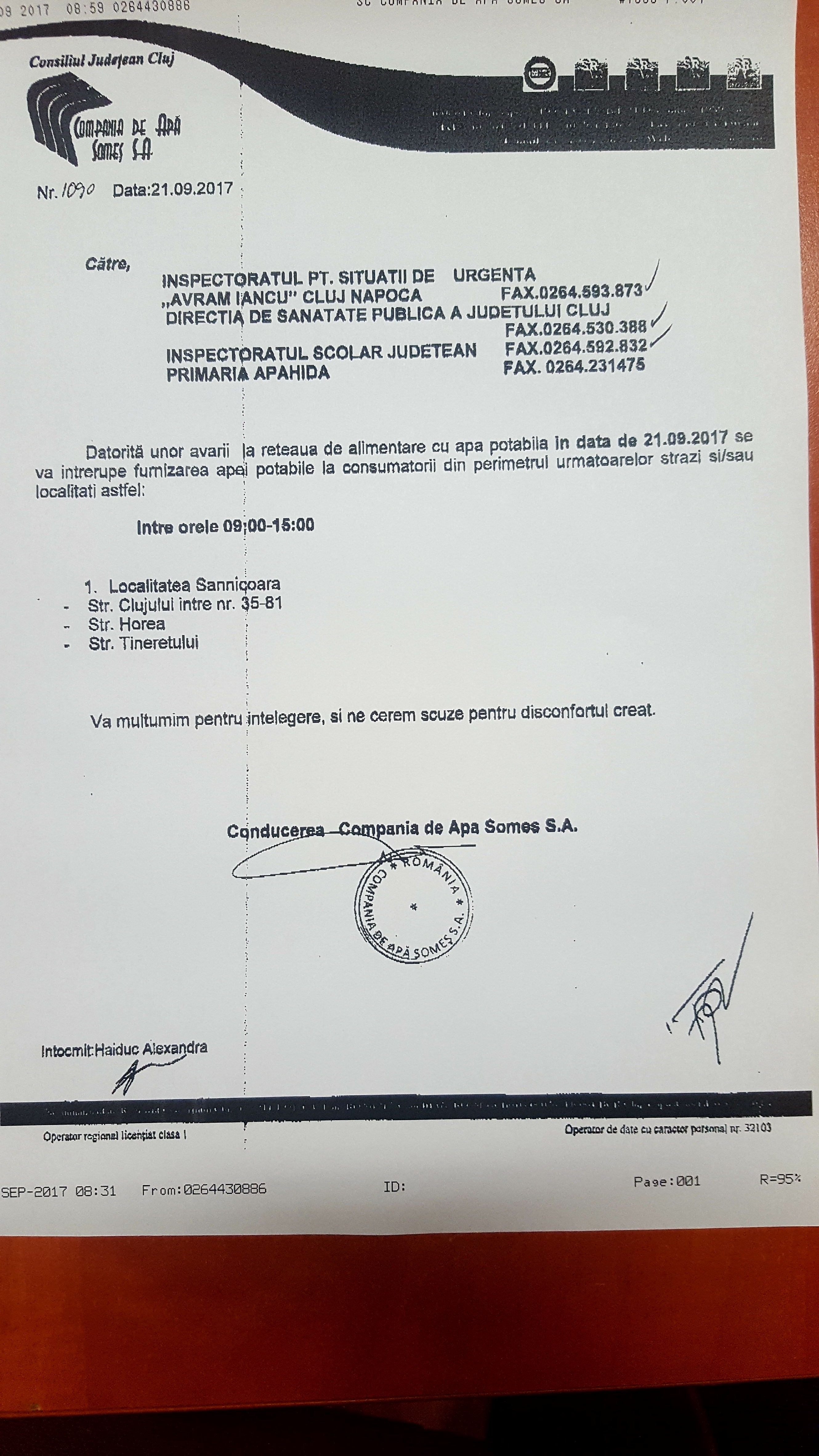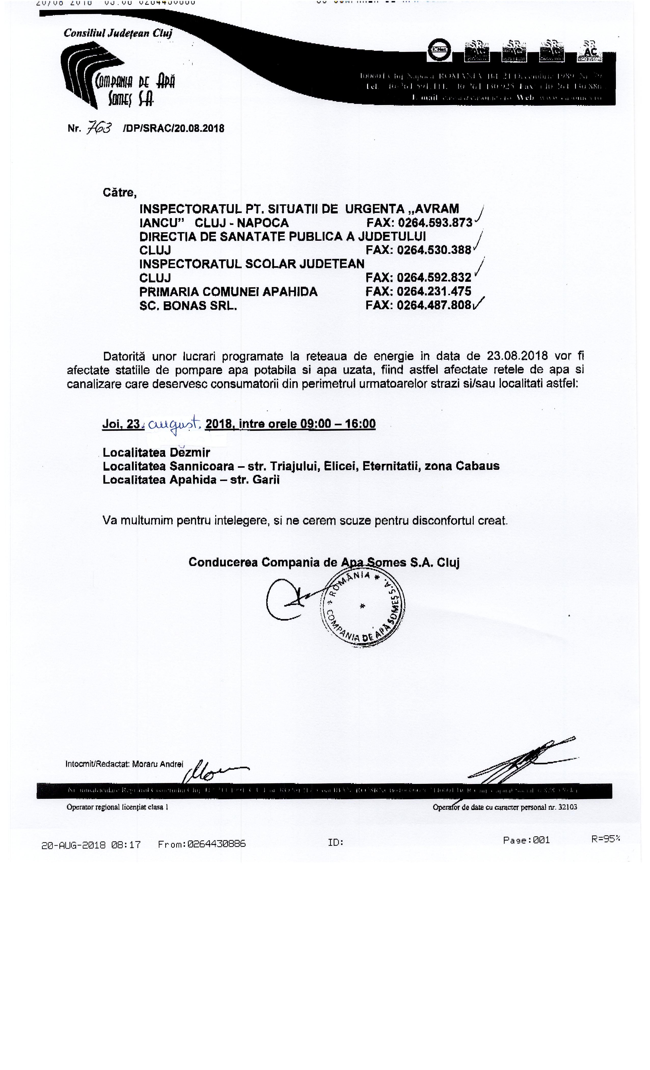 | 21.10.2025 | ANUNT, societati autorizate de catre Compania de Apa Somes S.A. , privind serviciile de vidanjare . - vezi anunț |