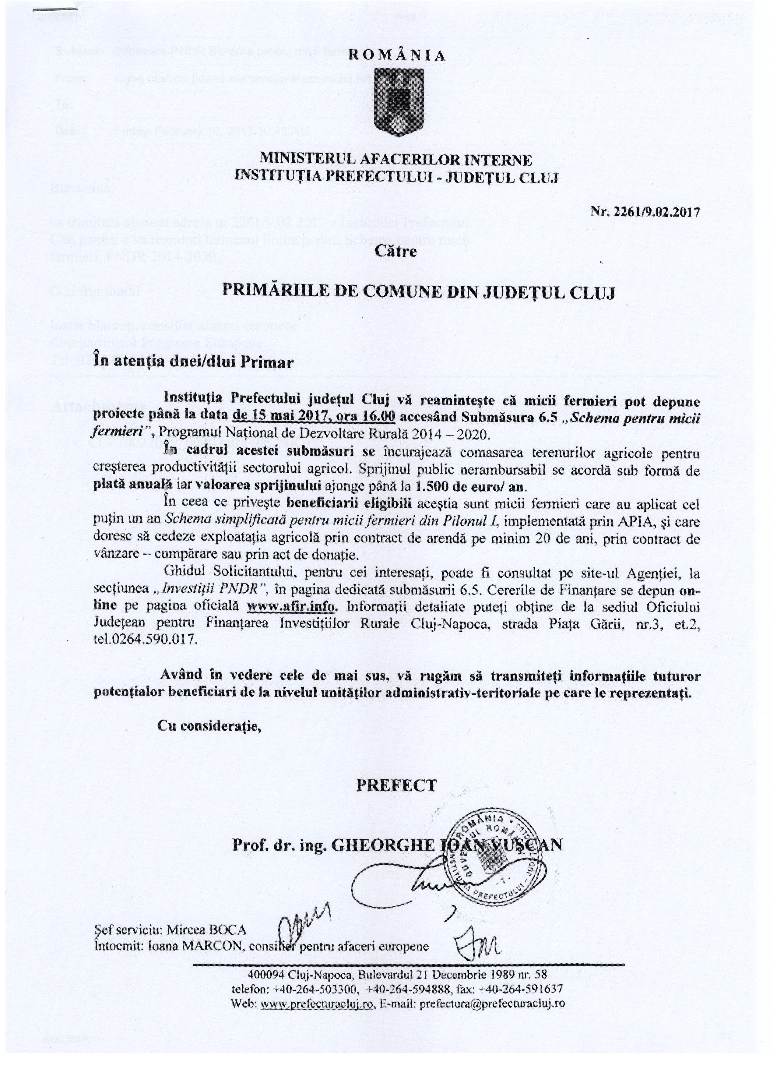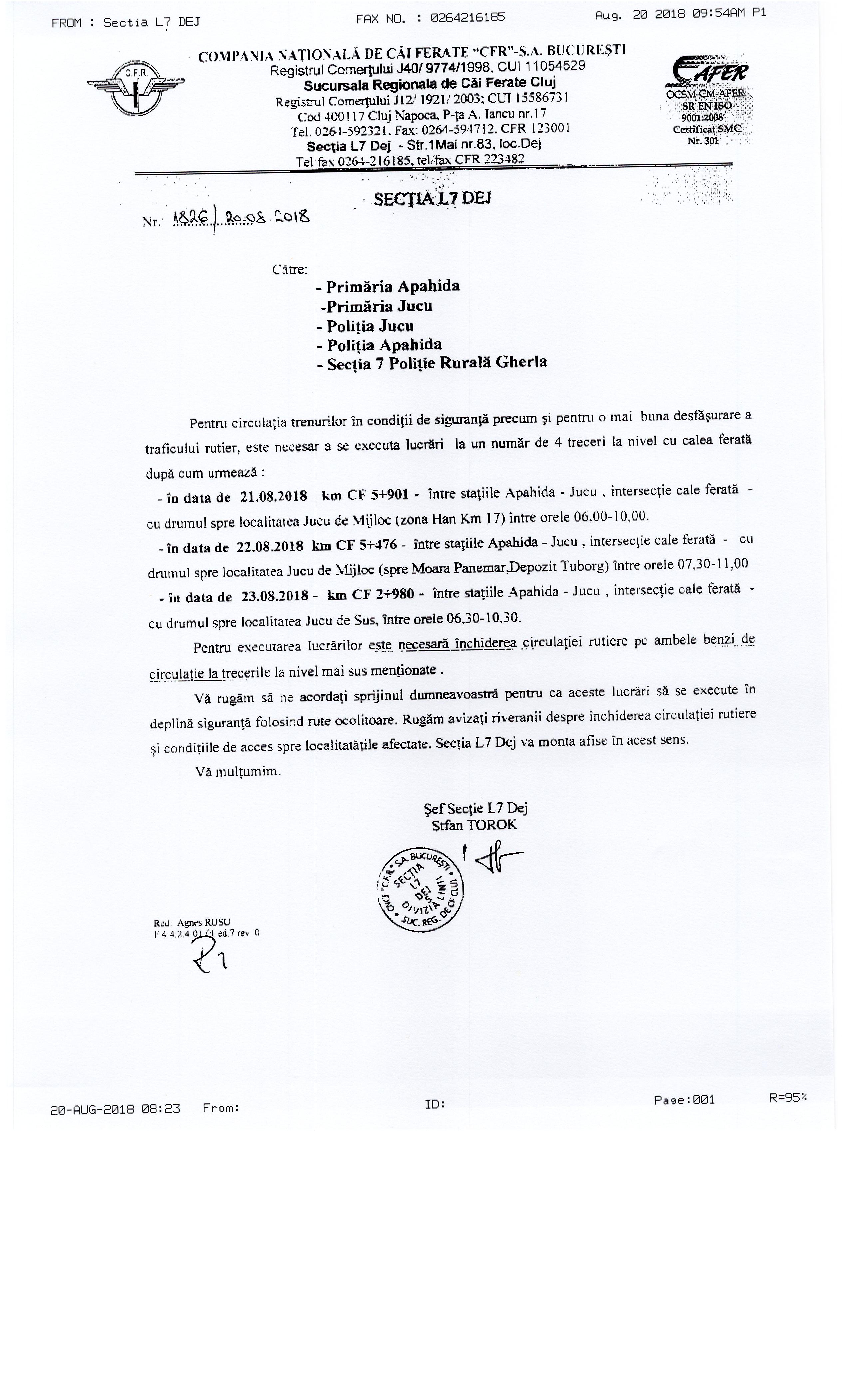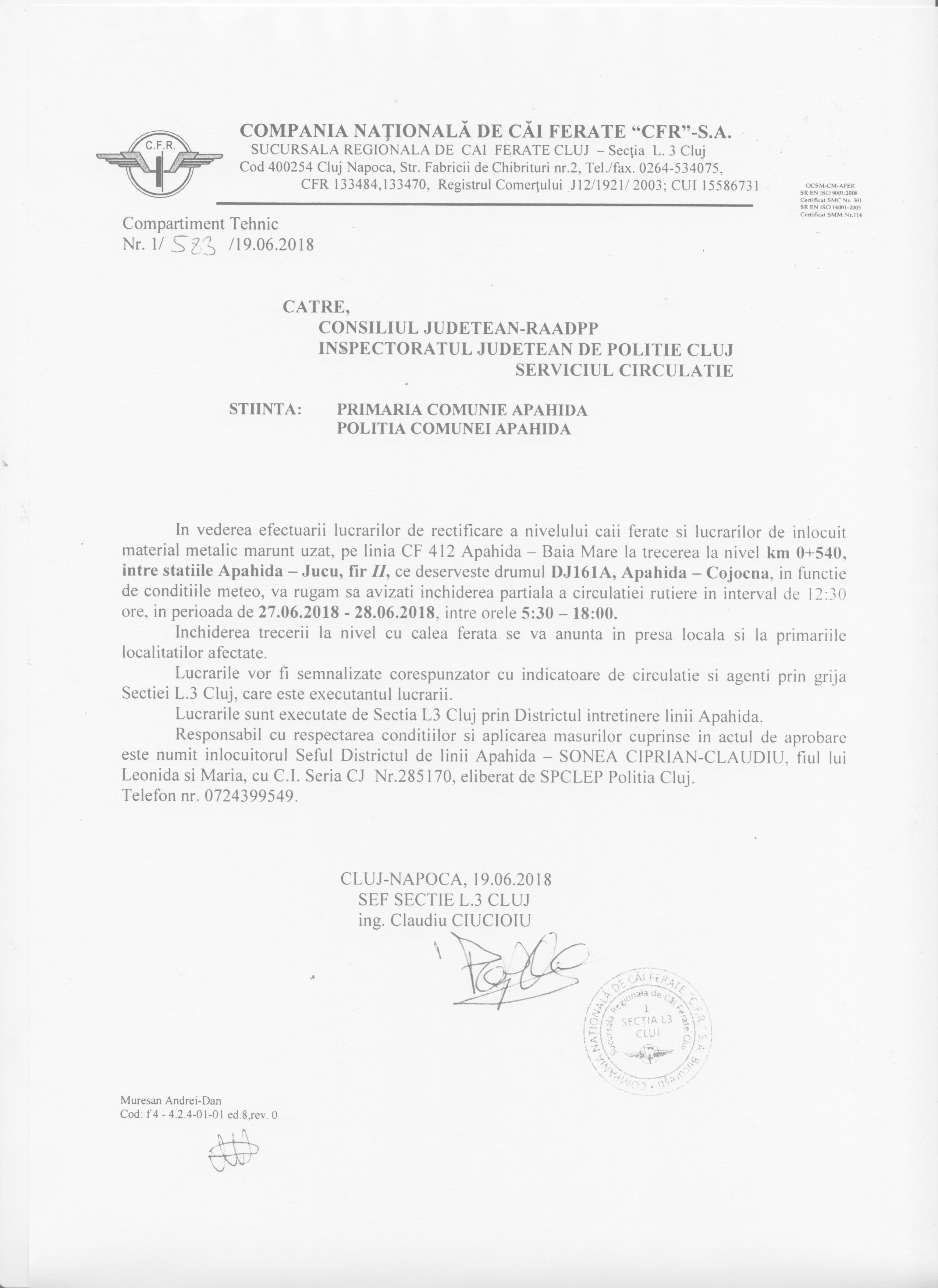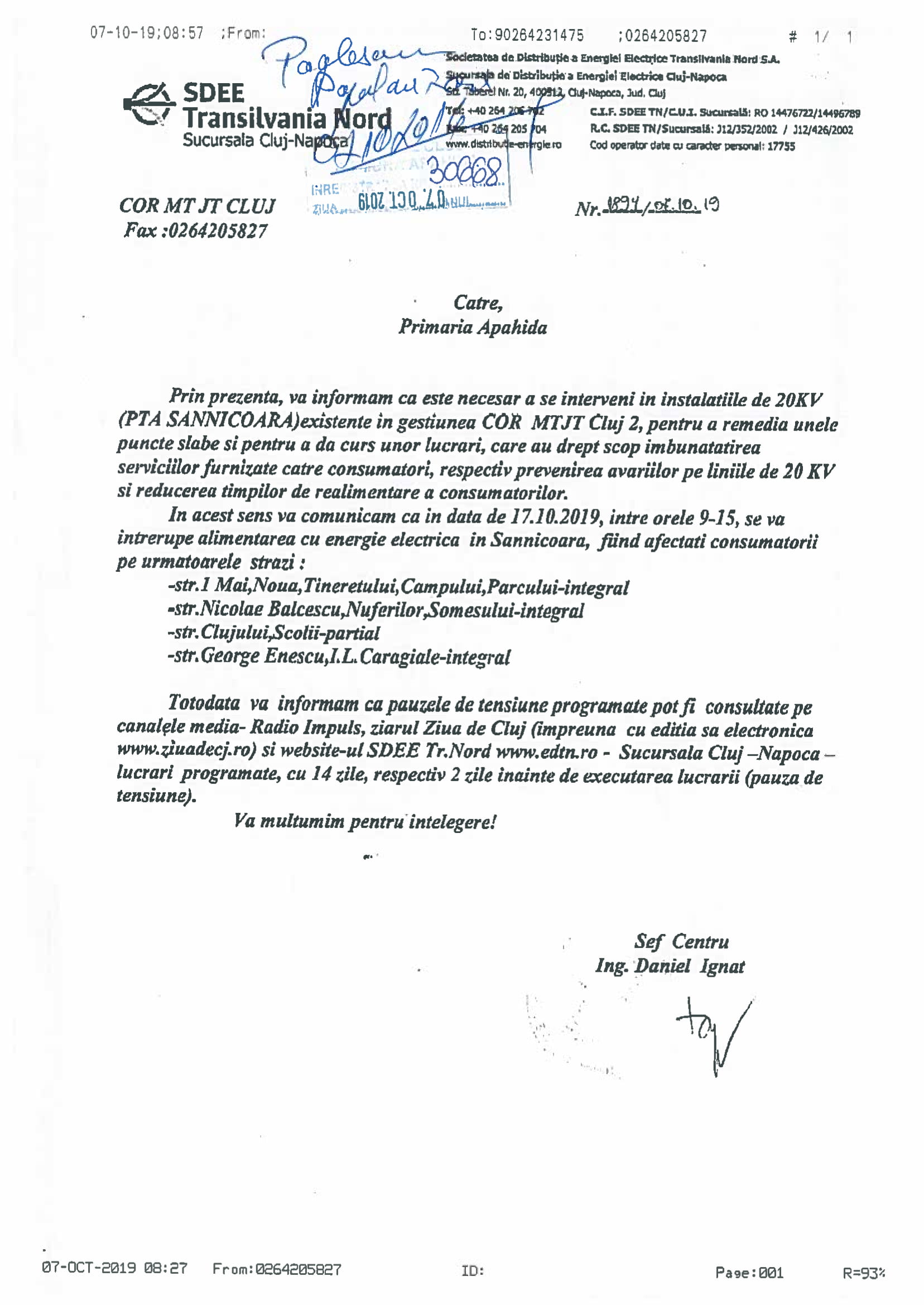 | 06.07.2016 | ANUNT ELECTRICA ( CEMJT CLUJ 2 )