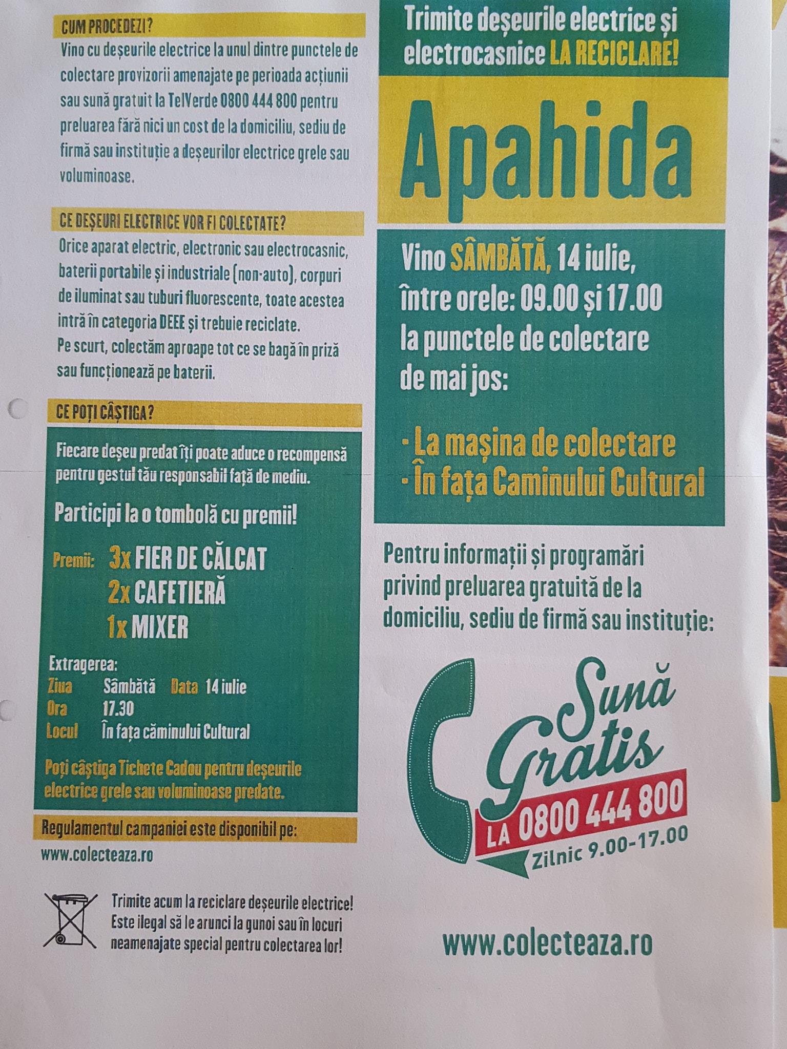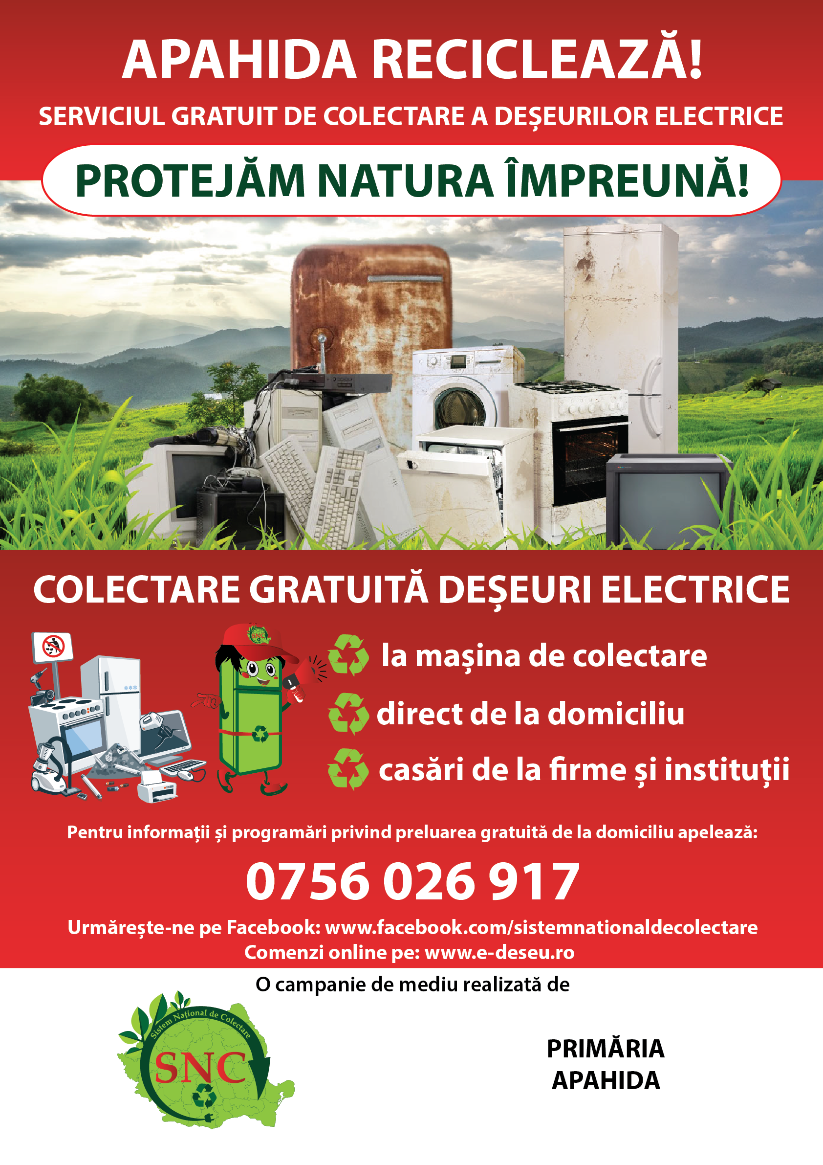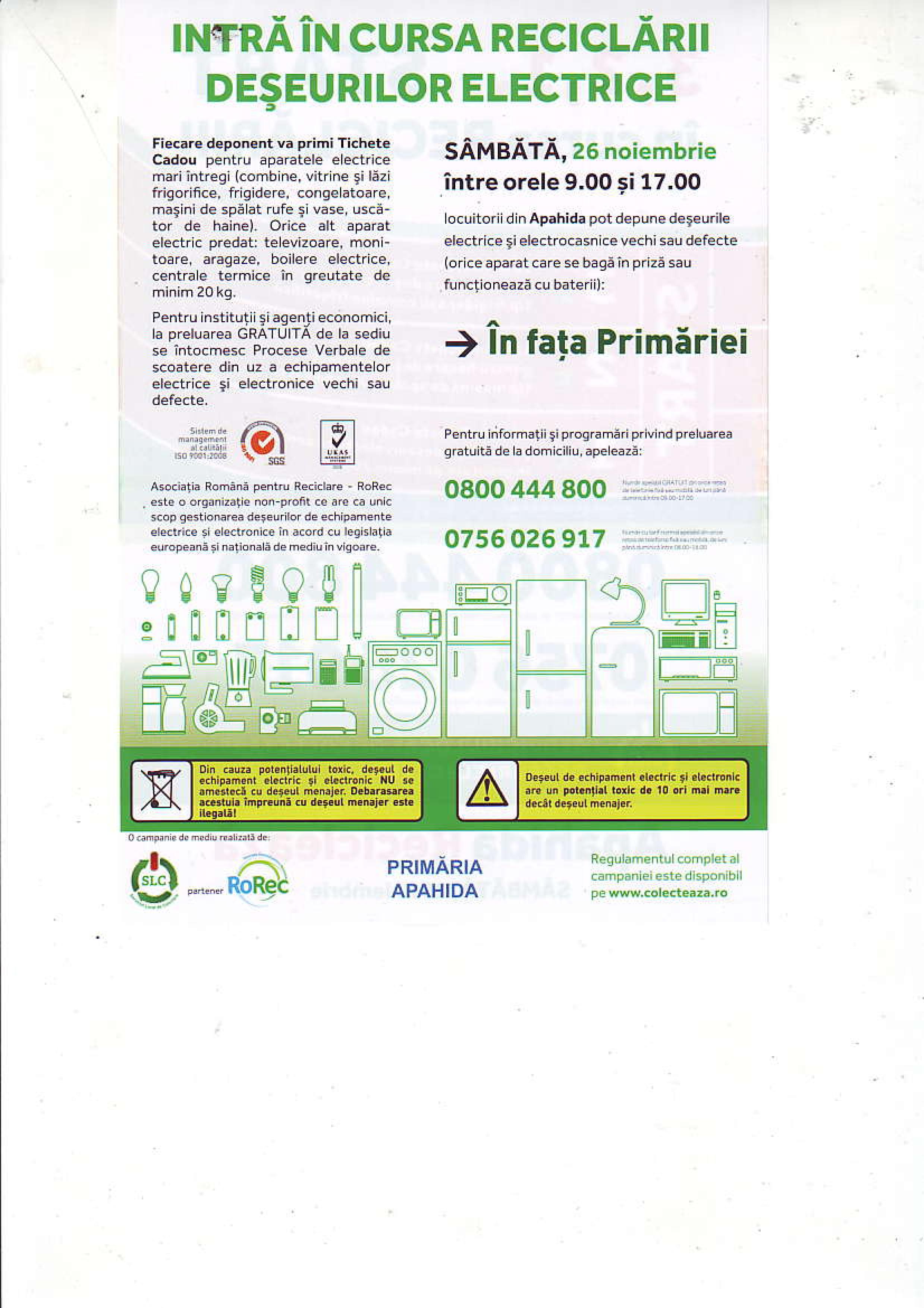 | 24.11.2015 | Grafic saptamanl de ridicare a deseului menajer din comuna Apahida |