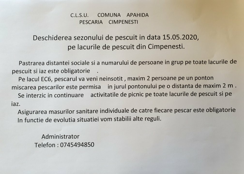 | 08.10.2025 | ANUNȚ IMPORTANT! Piscicola 6 Lacuri a încheiat un contract de pază și patrulare cu firma de securitate Scutul Negru. Scopul colaborării este creșterea nivelului de siguranță și asigurarea unui mediu plăcut și protejat pentru toți pescarii și vizitatorii noștri. Vă mulțumim pentru înțelegere și colaborare! #Piscicola6Lacuri #ScutulNegru #Siguranță #Câmpenești #PescuitRecreativ #RespectPentruNatură |