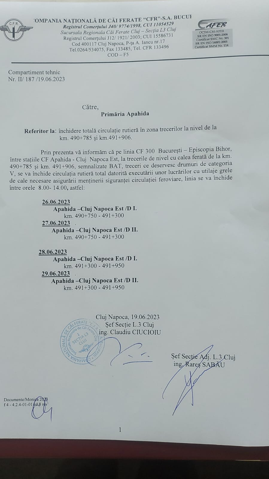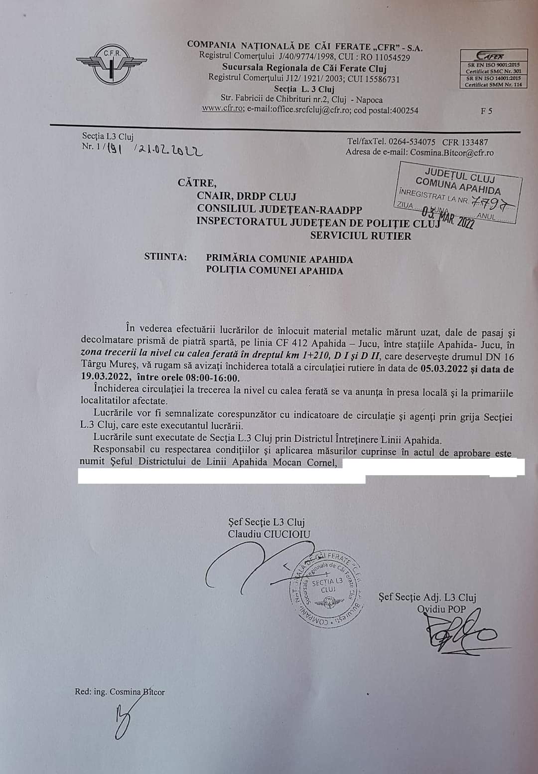 | 15.10.2025 | "Anunt public privind dezbaterea publica ,, Modernizarea liniei de cale ferata Coslariu-Cluj- Napoca "
