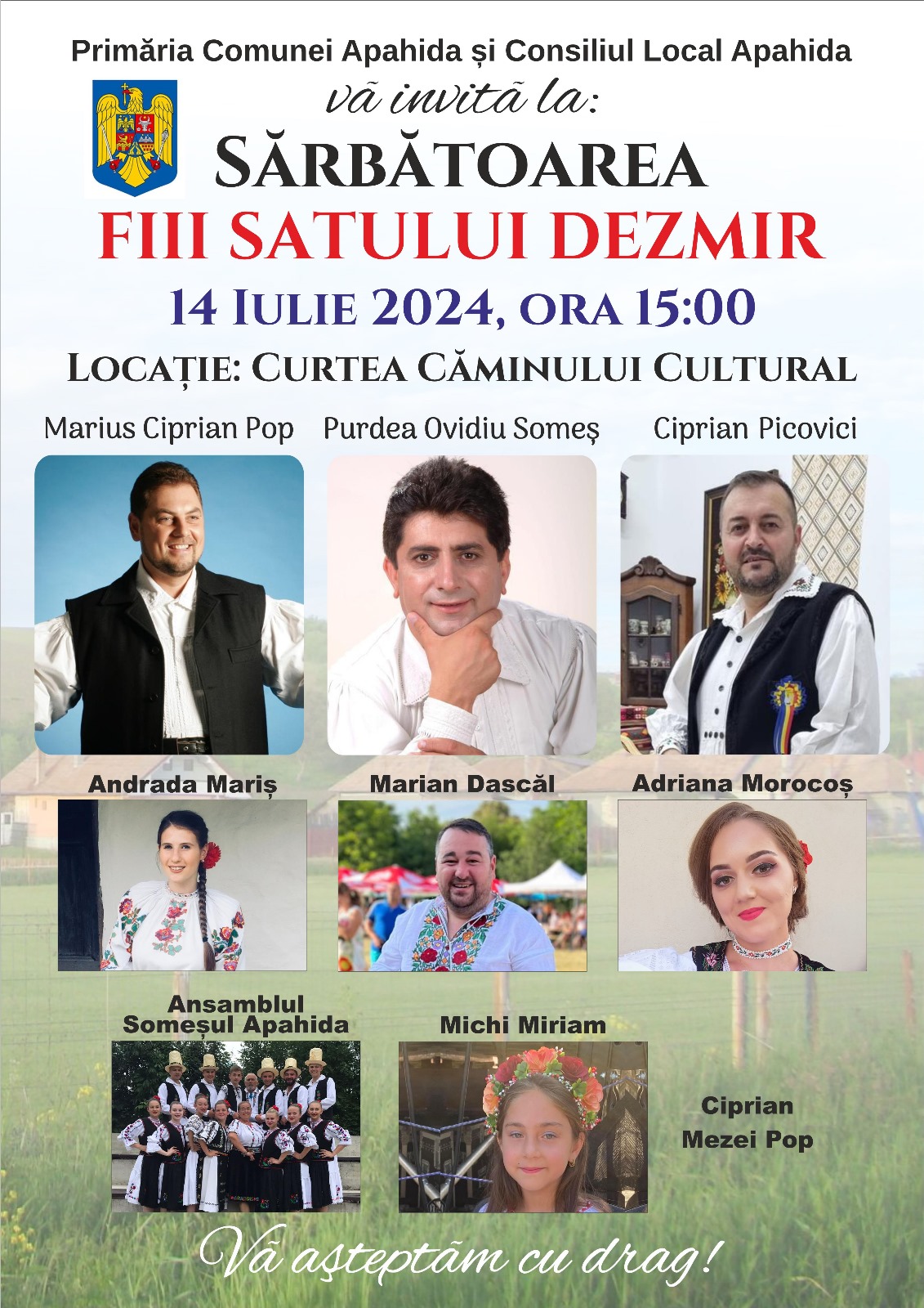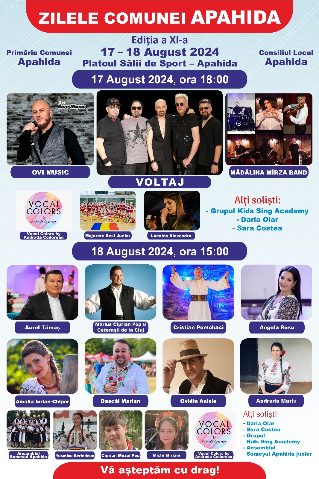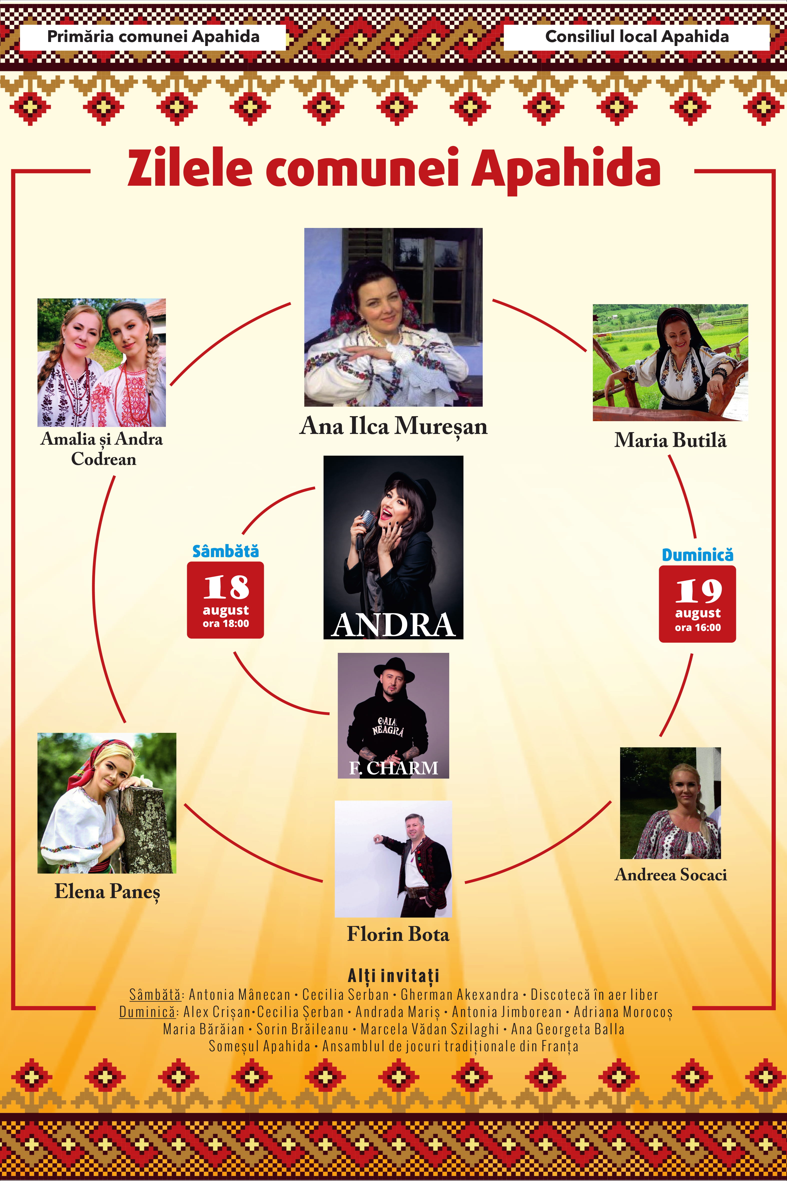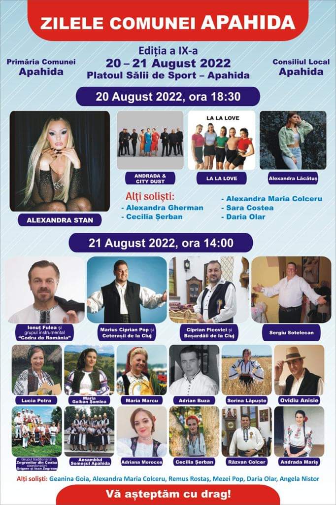 | 19.08.2016 | "ZILELE COMUNEI APAHIDA" - 20-21 august 2016. Program desfasurare, 20 august 2016 de la ora18:00