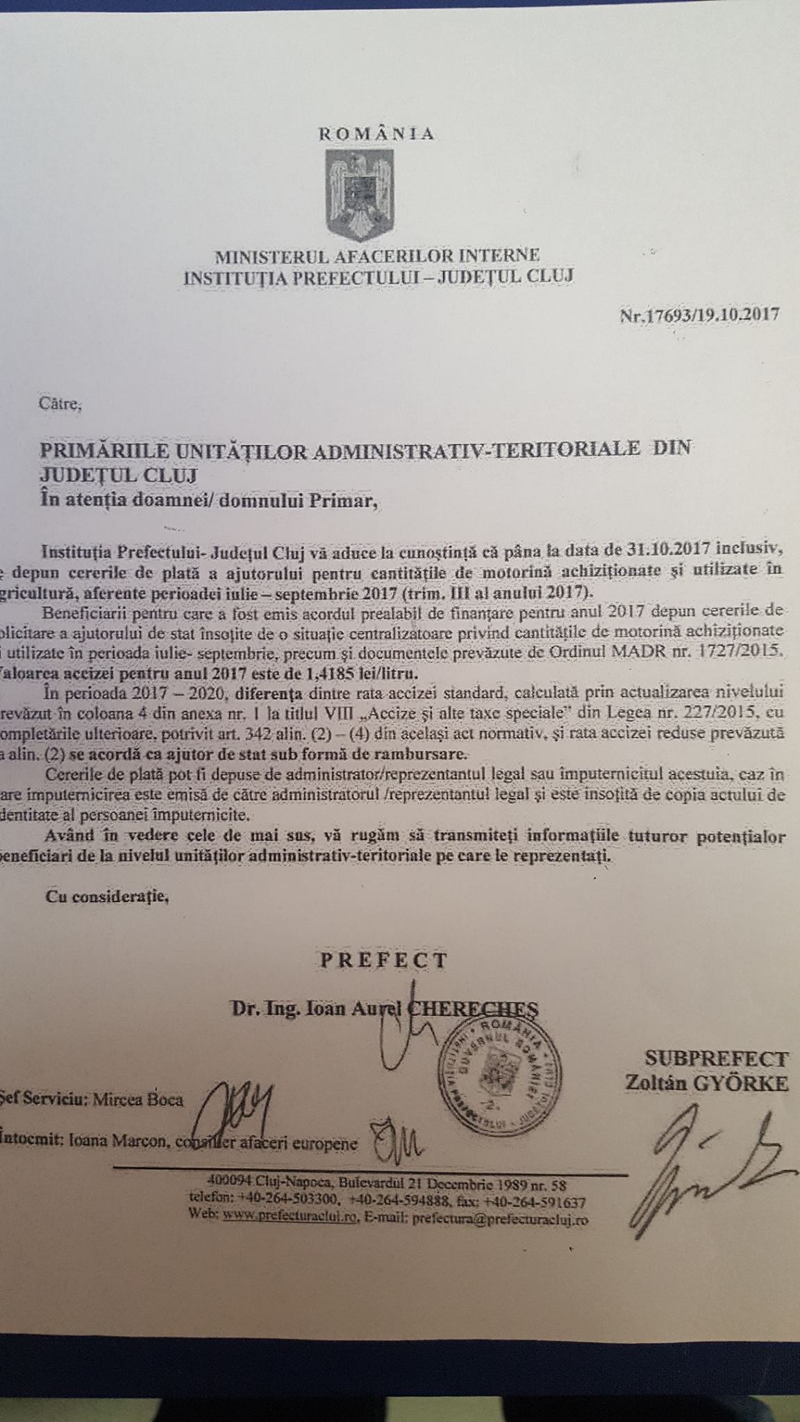| 27.10.2016 | A fost semnat azi 27.10.2016, la AFIR filiala Cluj contractul de finantare pe masura 7.2. ( P.N.D.R.) pentru "Modernizari strazi in comuna Apahida, judetul Cluj "- proiect in valoare de 1.174.262 euro, contributia Primariei Apahida fiind de 266.537 euro.