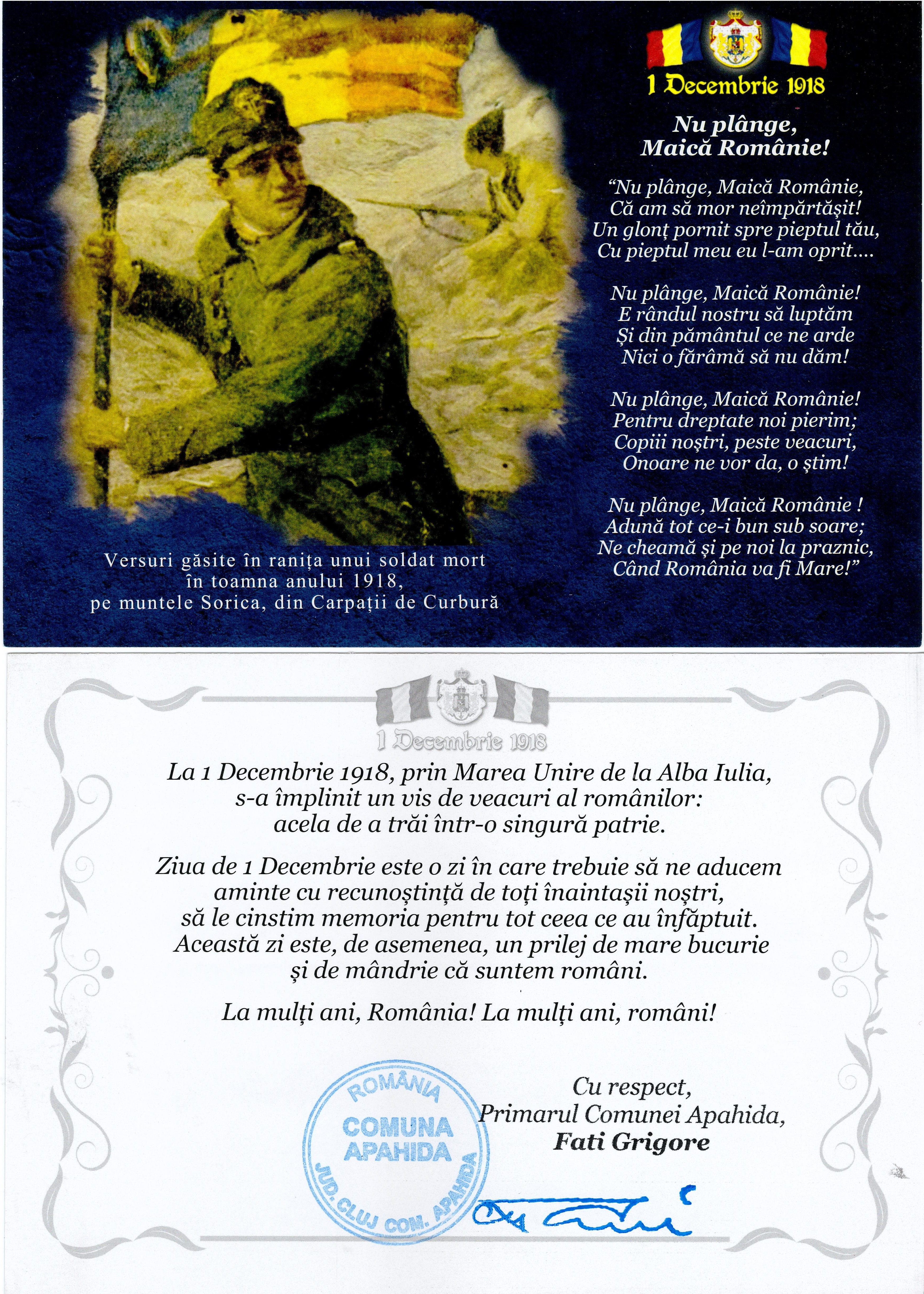 Colectivul Primariei Comunei Apahida este alaturi de dl. Prof. Dr. Ing. GHEORGHE IOAN VUSCAN - Prefect al judetului Cluj , in urma grelei pierderi pricinuite de decesul mamei sale .