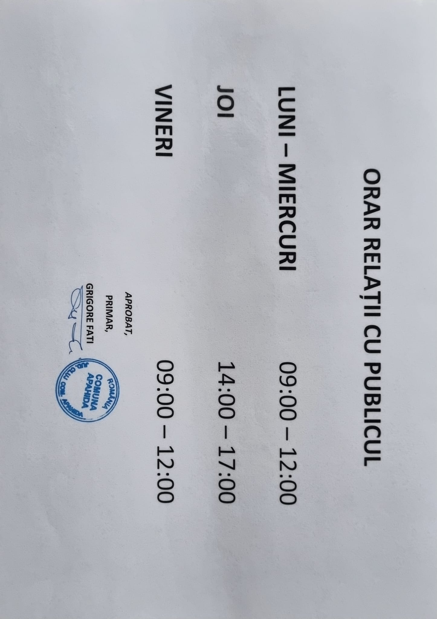 | 19.05.2025 | Anunț privind modificarea temporară a programului de lucru cu publicul la Compartimentul Stare Civilă. - vezi anunț |