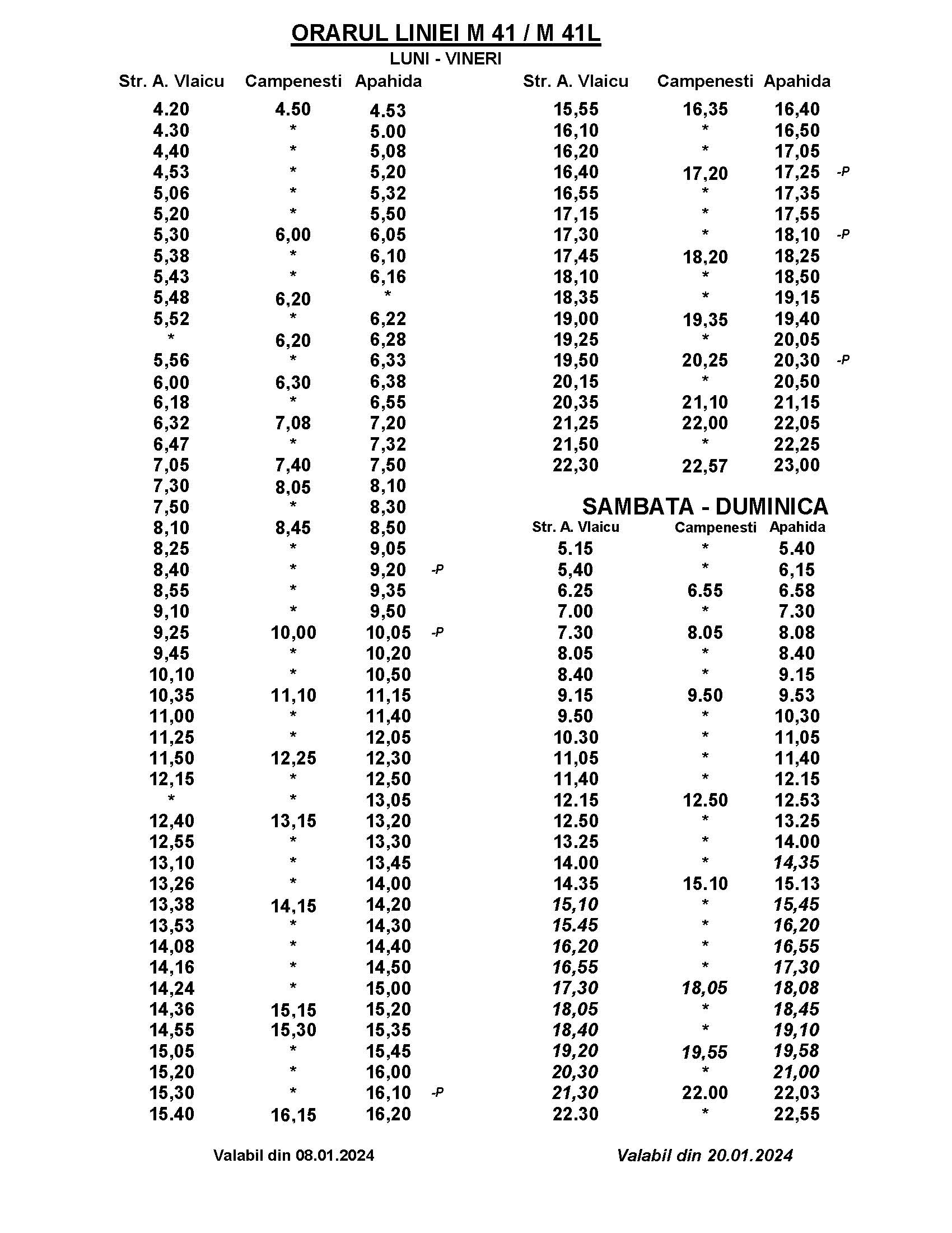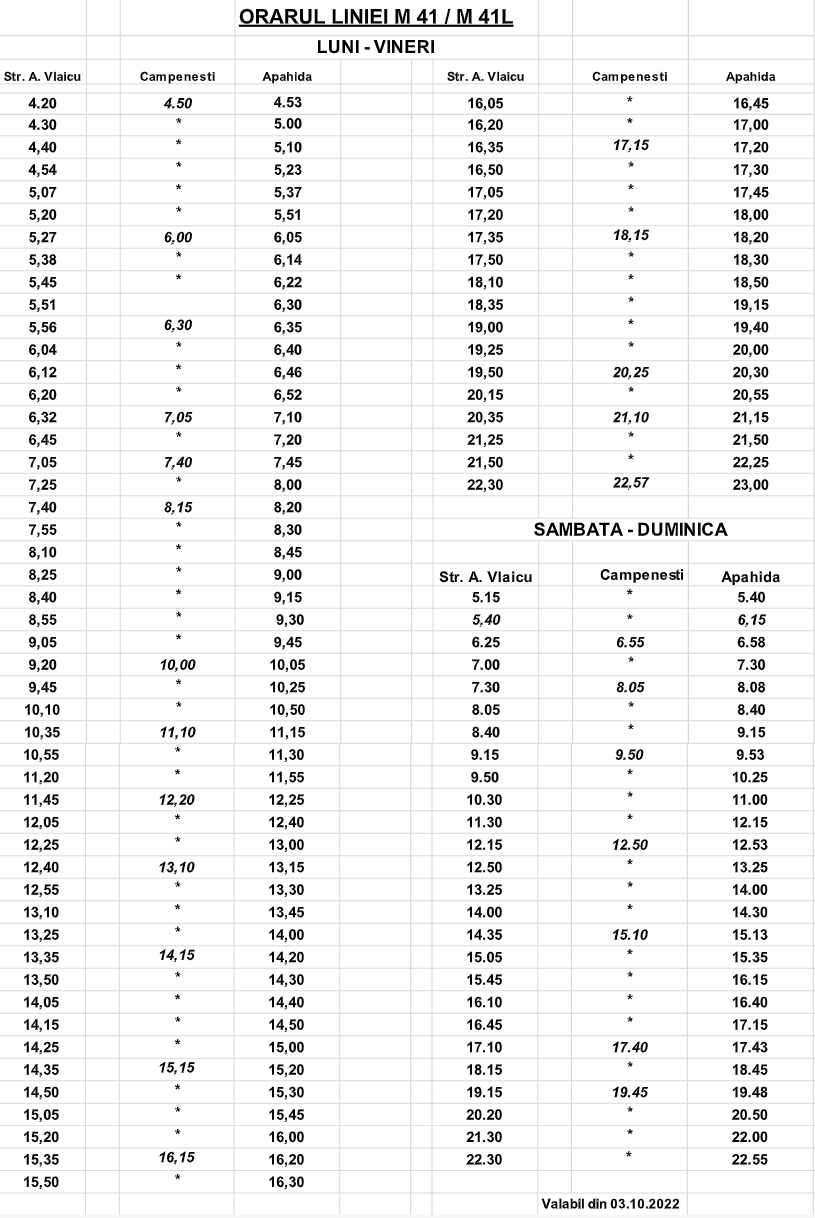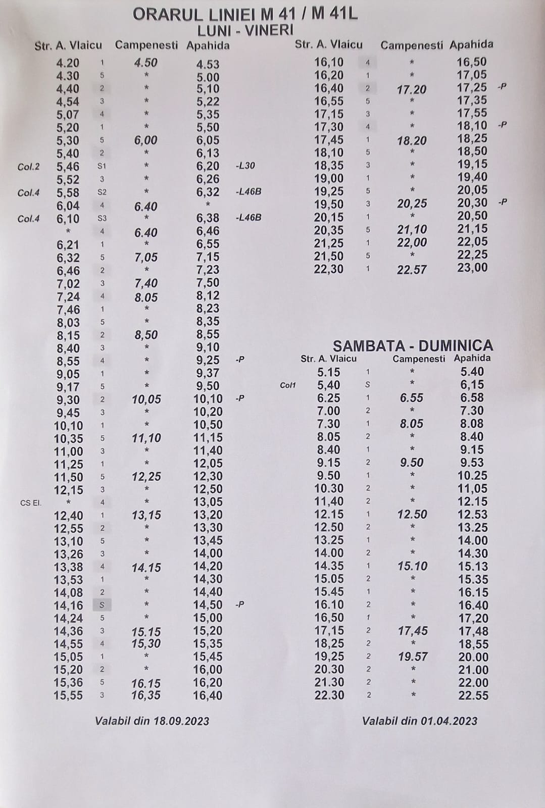 | 03.06.2025 | Orar linii metropolitane M41 si M41 L din data de 19.05.2025 -vezi anunț |