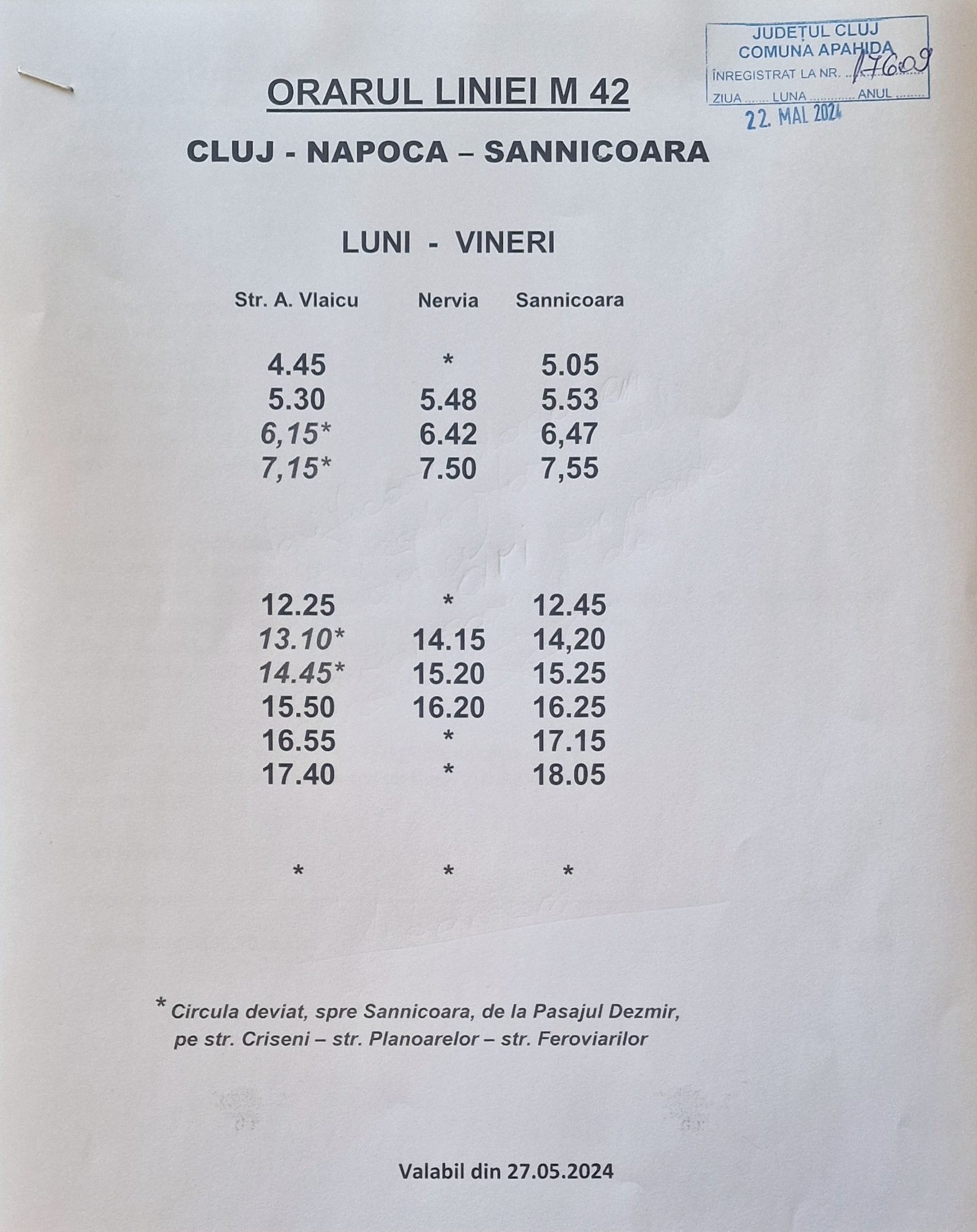 | 19.09.2025 | Elevii din comuna Apahida, înscriși în anul școlar 2025–2026 în unități de învățământ preuniversitar primar, gimnazial, liceal și postliceal acreditate/autorizate, beneficiază de gratuitate la transportul public local și metropolitan, pe tot parcursul anului școlar, în condițiile Legii nr. 198/2023. Totodată, și studenții cu domiciliul în comuna Apahida beneficiază de gratuitate la transportul public. |